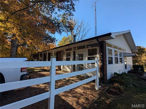Est $1,443/moRanch style home on 6.8 acres in Mt Vernon Illinois. New siding and roof in 2020, 24 x 32 detached garage, 62 x 44 pole barn and 2 metal sheds. The 6 plus acres is wooded rolling hills, great for hunting or just recreational use. Home has 3 bedrooms with 2 full baths, enclosed front porch and 2 fireplaces.
