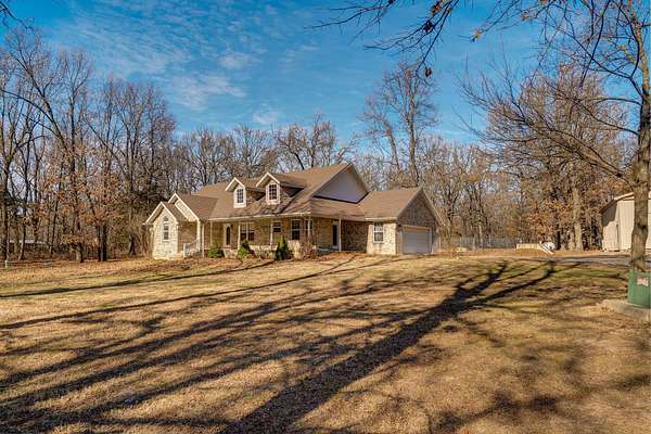 Welcome to your own little piece of heaven on earth. This is a very hard to find three bedroom 2 1/2 bath. 1922 ft. on 5 acres. Just minutes from town. Tucked peacefully and privately in the woods. Beautiful neighborhood. Surrounded by Beautiful Homes. Fantastic covered front porch. And a lovely Covered back patio with a sink great for barbecuing and entertaining.Especially Great for drinking that morning coffee. Watching all of the wildlife. Dear, turkey, all kinds of birds. Very peaceful. Large fenced in backyard. Formal dining room and an eat-in kitchen with a breakfast bar. Lots storage, cabinet space and counter space. Some fresh paint and updated flooring. Roof 9/21/22. Specialty water filtration system. for some great tasting well water. You will especially appreciate the 30 x 40 shop. Concrete floors and electric. With extra storage and a mezzanine. Also has an inground storm shelter for that piece of mind with that sometimes crazy Missouri weather. This property is conveniently located between Springfield and Joplin, Missouri. Easy access to I 44.