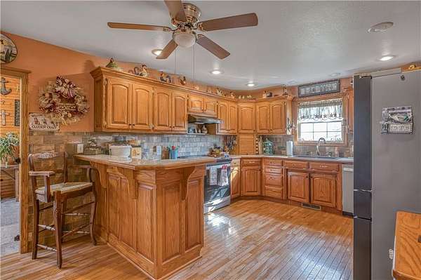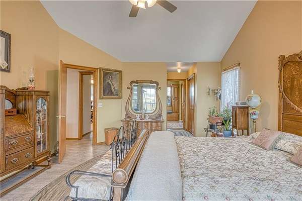 Welcome to peaceful country living on 29.56 acres! This spacious 5 bedroom, 3 bath home offers 3,614 sqft with soaring cathedral ceilings and multiple living areas designed for comfort and flexibility. The main level primary suite features a private en-suite bath, while the fully finished walkout basement provides additional living space complete with a second kitchen that is perfect for guests, extended family, or entertaining. Step outside to expansive acreage with multiple outbuildings ready for hobbies, equipment, animals, or storage. With room to spread out inside and out, this property offers endless possibilities. Don't miss a chance to see all this home has to offer and schedule a private tour today!
