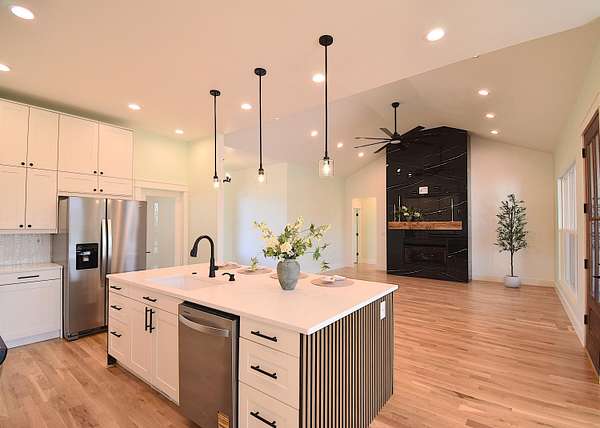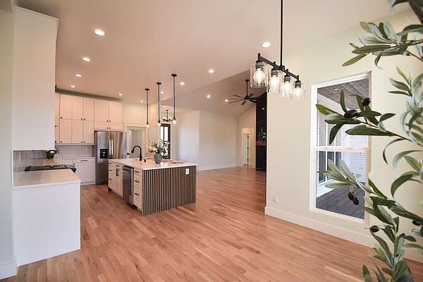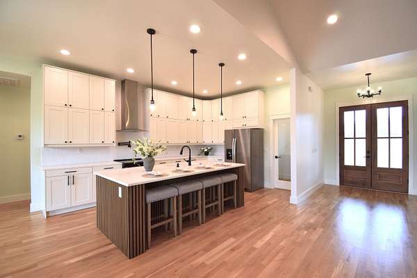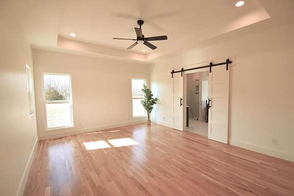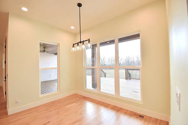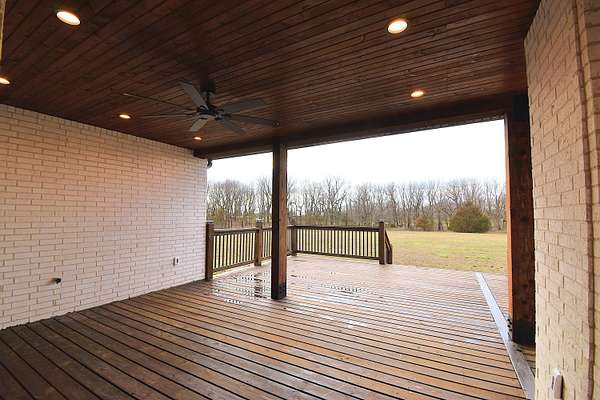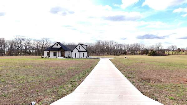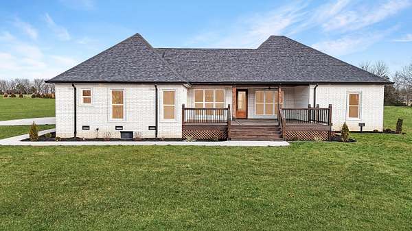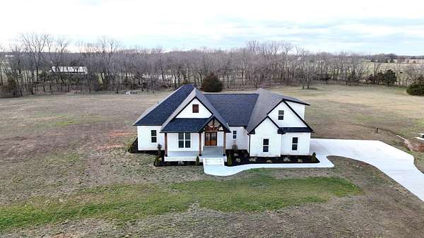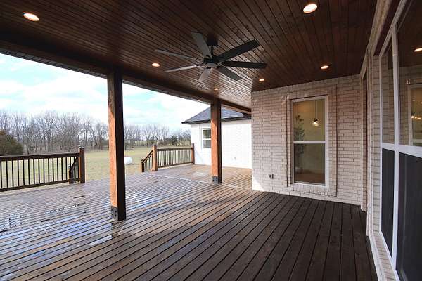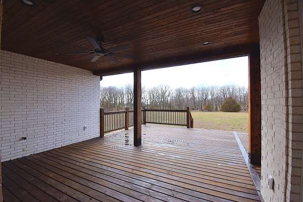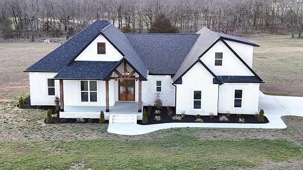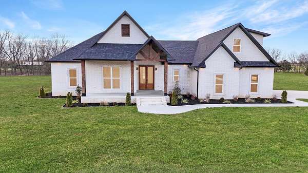 Stunning 2025 custom-built, full-brick home with 5 bedrooms, 3.5 baths on 5.75 acres in the highly sought-after Majestic Estates gated community, just outside Mt. Vernon city limits. Easy access to I-44 for commuting to Springfield or Joplin. The open floor plan features tall vaulted living room ceiling, a massive fireplace, and real hardwood floors throughout, with ample windows providing natural daylight. The kitchen offers custom cabinetry, quartz countertops, a large island/bar, and walk-in pantry, plus electrical and propane gas line behind the stove. The primary suite includes a 9' tray ceiling, porch access, custom tile bath, soaking tub, walk-in shower, and large closet with built-ins. Fifth bedroom includes a private full bath, ideal for guests or in-law quarters. The fully finished oversized 2 car garage comes with 220 power access for your EV or big tools. Spacious back porch for relaxing or entertaining, with golf nearby and Stockton & Table Rock Lakes within an hour drive.