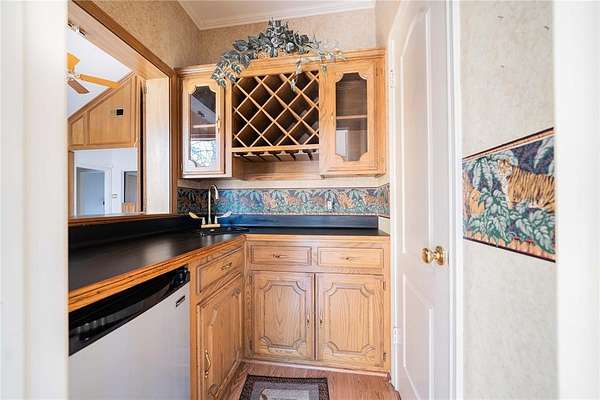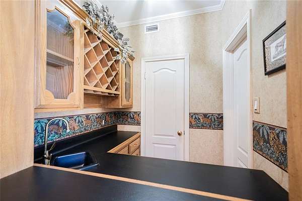 - Built-In Features, Decorative Lighting, Eat-In Kitchen, Kitchen Island, Natural Woodwork, Paneling, Vaulted Ceiling(s), Walk-In Closet(s), Wet Bar