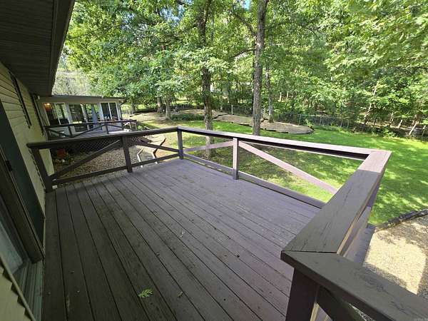 Peaceful setting on 2 large lots (approx. 2.6 acres M/L) located on a quiet court for added privacy. This well-maintained 3-bedroom, 2-bath home features a spacious living room with fireplace, a separate dining room, and a heated/cooled sunroom that overlooks the fenced backyard. The property backs up to woods for serene views and added seclusion. Enjoy mature landscaping, two outbuildings (including a 20x16 shop), and an attached 2-car garage. Home offers 1,799 sq ft of living space, plus a 336 sq ft unfinished basement for storage or potential expansion. Just minutes from Lake Norfork access, perfect for boating, fishing, and outdoor recreation. All this for $269,000!