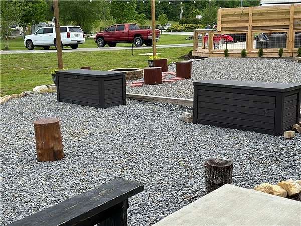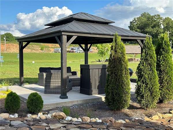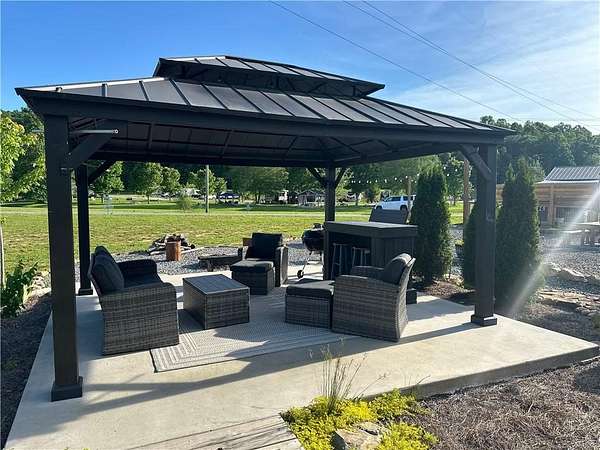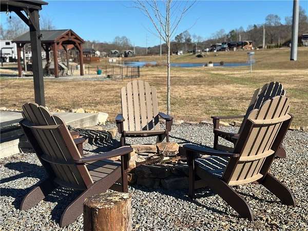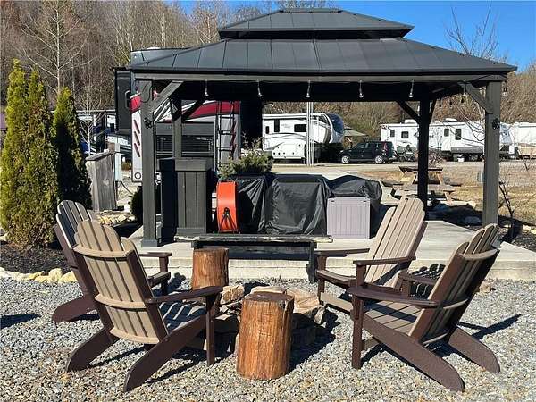 Tucked away in the picturesque North Georgia mountains, this RV/tiny home lot offers the perfect combination of tranquility and refined outdoor living. Featuring beautifully designed landscaping and expertly crafted hardscaping, the property is a true showcase of outdoor elegance. Included with the sale are all furnishings, ensuring your new retreat is ready to enjoy the moment you arrive. Picture yourself relaxing in comfort, surrounded by lush greenery and the calming sounds of a nearby pond. (Note: the pond is catch-and-release only, with no permits required.) Whether you're dreaming of a peaceful hideaway or a vibrant space to entertain, this property delivers it all. Perfect for an income producing vacation rental or for your own personal use! Highlights include a paved lot, a cozy gazebo with couches and a bar, a picnic table, a fire pit, and stunning landscaping that creates a serene ambiance. Lot is equipped with RV hookups. The community offers exceptional amenities such as a pool, hot tub, fire pits, a pavilion, a wood-fired pizza oven, grills, a clubhouse with laundry and showers, a playground, a dog park, pickleball, disc golf, and basketball facilities. Additional perks include a stocked pond, kayak launch at the creek, gated access, and on-site park rangers. Conveniently located near everything the North Georgia mountains have to offer-hiking trails, waterfalls, parks, wineries, and even a casino just a short drive away-this property is also close to Lake Blue Ridge and Morganton Recreational Point for water recreation. With Downtown Blue Ridge just 10 minutes away, this property is an incredible investment opportunity or the ideal base camp for your next adventure.