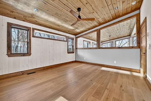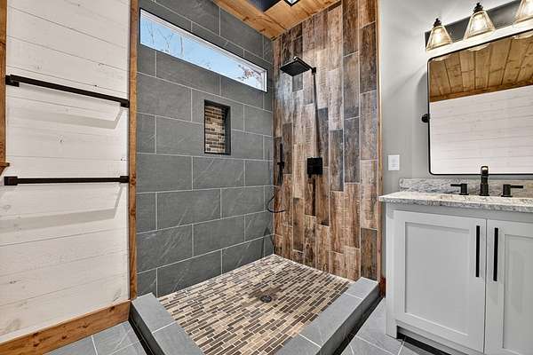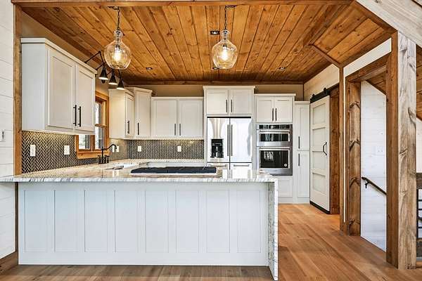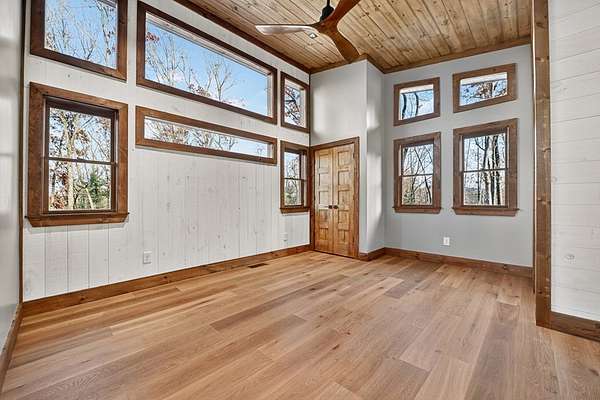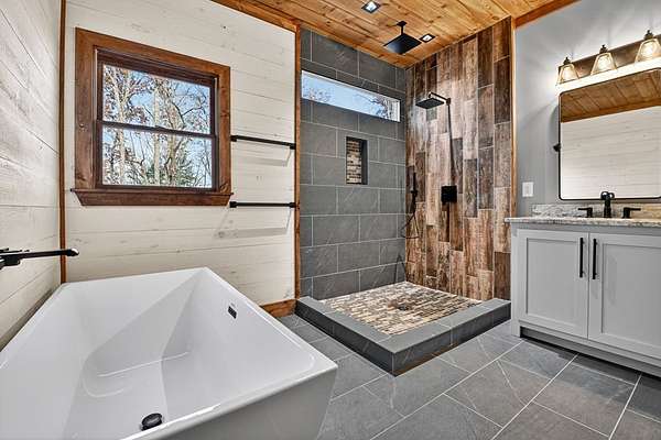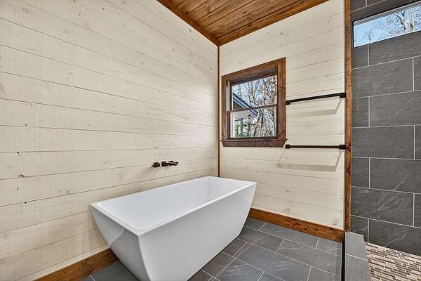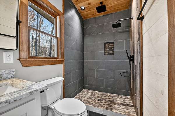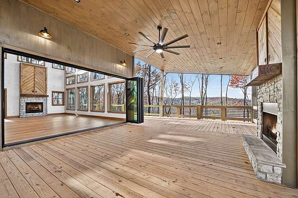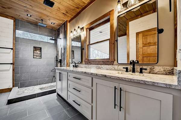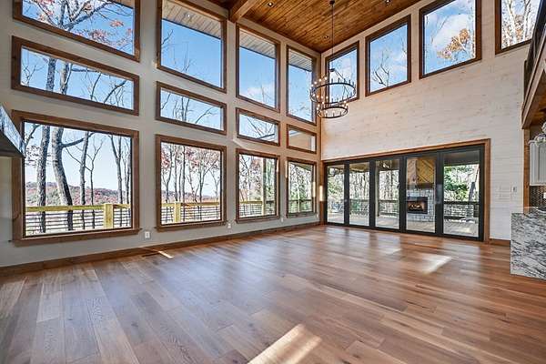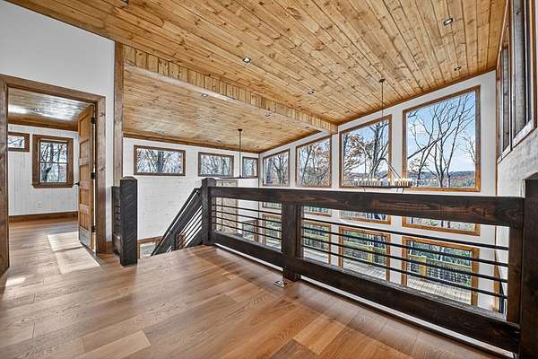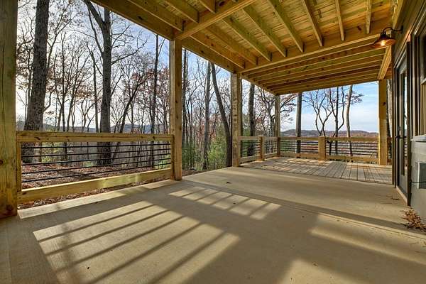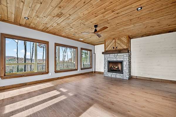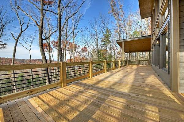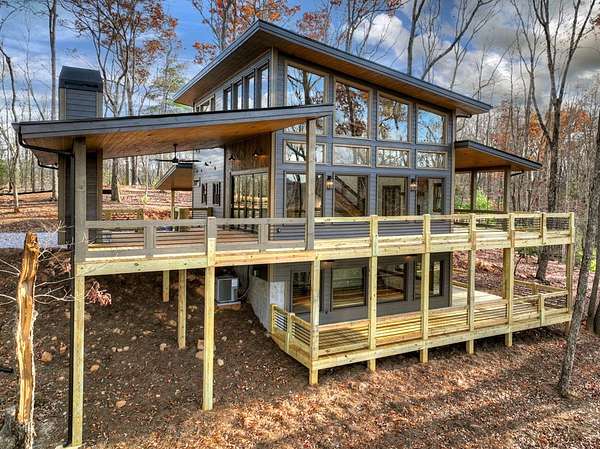 Located in the highly sought-after Aska Adventure Area, this Mountain Modern retreat offers the best of both worlds: a peaceful getaway and a high-end potential investment. Set on 1.79 acres with stunning year-round mountain views from every level, this 4-bedroom + loft, 3.5-bath home blends upscale comfort with rustic charm. Inside, an open-concept layout welcomes you with a gourmet kitchen featuring custom flooring, solid surface countertops, a large farmhouse sink, and a sleek tiled backsplash. The kitchen flows into the spacious great room, where a floor-to-ceiling stacked stone fireplace and a wall of windows bring the outdoors in. Perfect for entertaining or unwinding, the terrace level includes a wet bar/kitchenette, a second stacked stone fireplace, and direct access to one of several expansive decks. Outdoors, enjoy a large party deck with a wood-burning fireplace, plus multiple levels of covered and open-air decking to soak in the views. Custom-tiled bathrooms, hardwood flooring on the main and upper levels, and thoughtfully designed finishes throughout add to the home's appeal. Just minutes from hiking in the National Forest or launching a canoe on the Toccoa River, it's an outdoor lover's paradise. Whether you're looking for a personal mountain retreat or a short-term rental property, this home checks every box.
