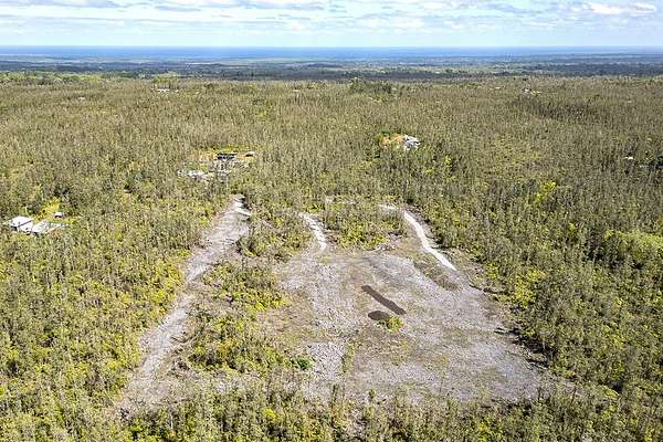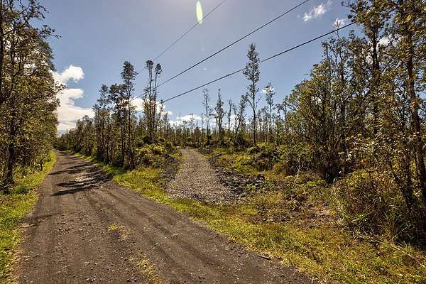Beautiful Hawaiian Acres 3 acres side by side properties for a potential 6 acres! (See MLS 727013 for adjacent property priced at $79K) Possible Ocean Horizon View from a 2 or 3 story home. Nice, approximate 1200' elevation for gardening & enjoying cooler evenings. Fruit trees have been started. For the new owner a truckload of Hamakua soil and a truckload of black cinder for planting & landscaping projects. A curved driveway of over 300' of drain rock has been placed. Partial bulldozing has been completed on the first 2 acres with the third acre left untouched to add a nice privacy buffer zone. All corner pins are staked and are visible. Electricity is available - SSPP fee $ 1949.00 . Build your dream home or cabin in Paradise surrounded by native Ohia Lehua forest. A must see.