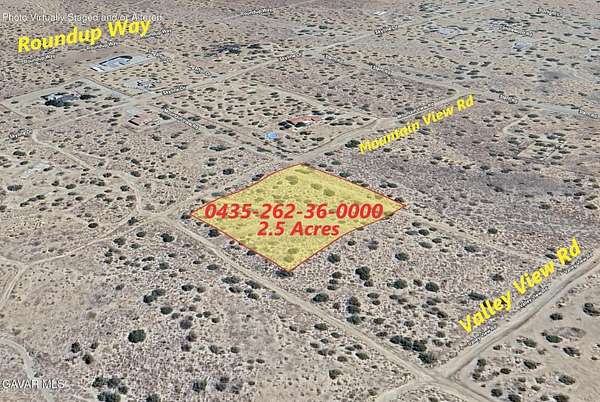 Est $326/moAPN: 0435-262-36-0000Coordinates: 34.417333, -117.1135562.5 Acres for sale in San Bernardino County. This lot is located in the Apple Valley area on the corner of Mountain View Rd and Calico Road. Excellent location to build a home near other houses.