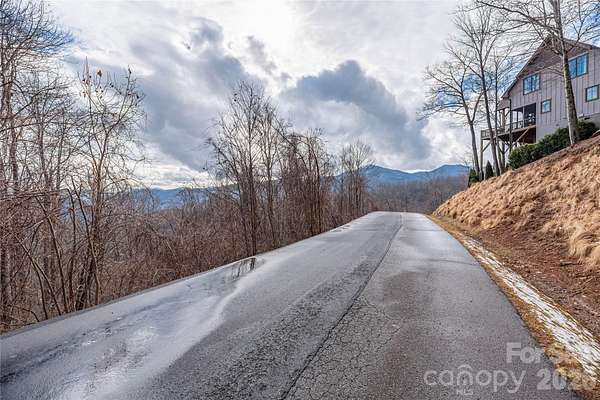 From US 74 E take Exit 102B towards Maggie Valley. Turn left onto HWY 276/Dellwood, turn left onto Fox Run Road, right onto Jaynes Cove Road, go through wood covered bridge staying left at the fork onto Brannon Forest to the gate. Gate code required. Turn right onto Mountain Watch Drive, continue around U-shape curve past the next bend and lot will be on the right, before Roslyn Park Drive.
