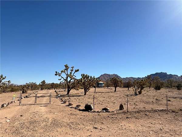 DISCOVER YOUR OWN SLICE OF THE WILD WILD WEST! WITH THIS SPACIOUS 1.07 ACRE PROPERTY OFFERING SWEEPING DESERT AND MOUNTAIN VIEWS, SURROUNDED BY NATURAL BEAUTY WITH JOSHUA TREES GALORE. ENJOY STUNNING SUNSETS AND STARRY SKIES AND THE PEACEFUL SERENITY OF DESERT LIVING, THIS LOT PROVIDES THE PERFECT SETTING TO BUILD YOUR DREAM HOME OR WEEKEND RETREAT! THIS FENCED PROPERTY INCLUDES A GIANT SIZED ROOM THAT HAS BEEN BUILT SO THAT YOU CAN PULL YOUR MOTOR HOME STRAIGHT UP TO IT, IT CURRENTLY HAS ONE ATTACHED TO IT AND WILL CONVEY WITH THE PROPERTY. THERE IS ALSO A SHED THAT HOUSES A LAUNDRY ROOM AND STORAGE. CONVEYING WITH THE PROPERTY ARE SOLAR PANELS FOR ELECTRIC SET UP. COME CHECK OUT THIS PROPERTY!