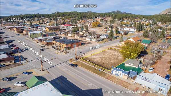 Location, Location, Location! Custer's last high visibility site. Two city lots in downtown Custer at the corner of Mt Rushmore Road and N8th Street. One of Custer's busiest locations and most visible corners, directly across the street from Lynn's Dakotamart, with approximately 100ft of frontage on Mt Rushmore Road. This vacant property sits right at the corner of a highly trafficked 4-way stoplight intersection. City services are available. Lots are ready to build upon. Decorative metal fencing along property perimeter. Ideal for almost any type of business, this would make a perfect setup for those that desire a high traffic, high visibility location. If you have been looking for a commercial lot in Custer, this is the place for you.