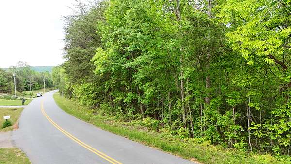 The land has a gentle slope, dropping about 15 feet from the road toward the back of the property. Power lines run along the road frontage and cross in front of the lot. No utilities are currently installed on the property, but nearby access is visible from the road. Cell service in the area is sufficient for general use, including browsing and social media.