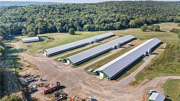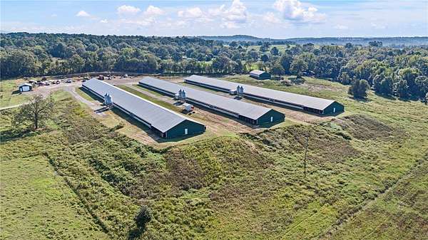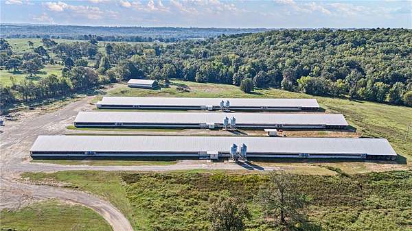 Due to Bio Security DO NOT go to farm without a scheduled showing appt. Exceptional opportunity, income-producing poultry farm with a strong production history and modern facilities. This farm features (3) 54500' Turkey houses built in 2018, all equipped with Chore-Tronic 2 controls, Bigfoot heaters, and 54-inch tunnel ventilation. The setup is all-in/all-out for efficient flock management and includes Stennicator medicators for precise water line treatments. Supporting structures include a 2430' heated and cooled shop, perfect for tools and equipment, and a 4080' litter shed for dry storage and easy clean-out. The property also comes with (6) 1000-gallon owned propane tanks, ensuring consistent and cost-effective fuel supply. With a three-year average gross income of $270,058, this operation provides an excellent return and is ready for continued success. The surrounding acreage offers room for expansion or additional agricultural uses. Average Gross Income: $270,058 (3-Year Avg)