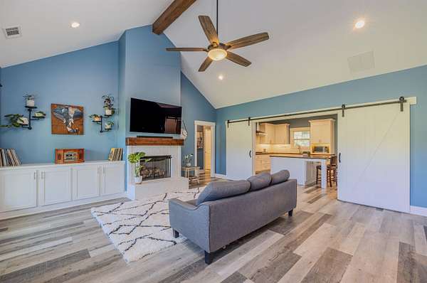 Secure the trifecta of space, privacy, and modern design. Built in 2022, this 5-acre custom property offers a seamless turnkey lifestyle. The interior features 10’ ceilings and allergy-friendly LVP flooring throughout a split floor plan. Picture windows in the vaulted living room provide frequent views of wildlife, while the kitchen’s large 8x8 island is built for entertaining. The primary suite features dual walk-in closets. A secluded upstairs bedroom provides the perfect footprint for a private suite or home office. A dedicated mudroom includes a custom doggie shower "pet spa". Enjoy summers by the in-ground pool or on the 12x18 screened porch overlooking a private wooded oasis. The oversized garage contains EV charging/220V power. A detached 24x28 workshop and two-stall barn offer endless possibilities. Experience serene country beauty without sacrificing modern sophistication. Schedule your private tour today.