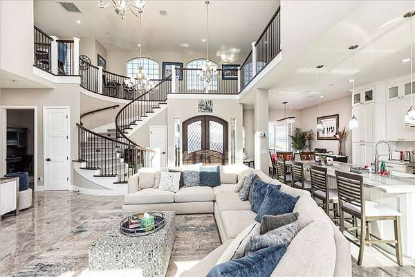 The residence showcases sophisticated living spaces including two offices, billiard room (pool table negotiable), 3 wet bars, sound system throughout including the 3 car garage.