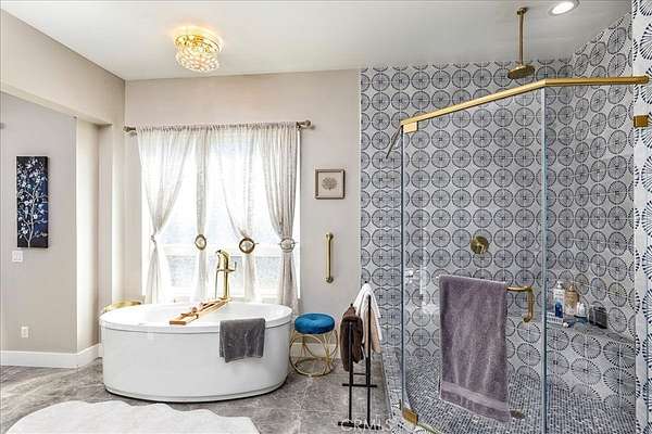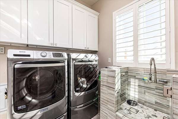 Thoughtful details continue with Plantation shutters, professionally designed kitchen and premium built-ins, laundry room with a dog wash station,