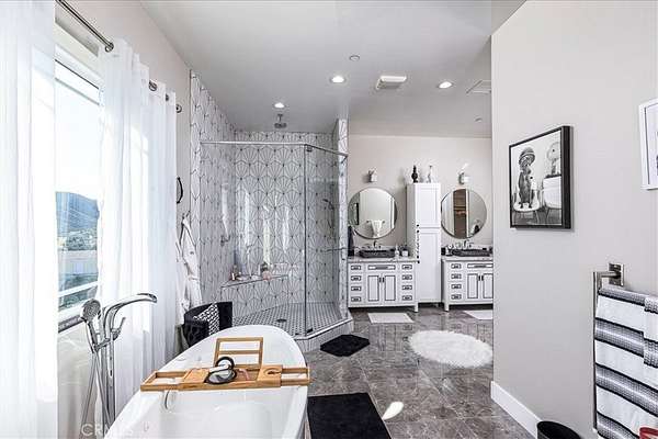 Elevated to capture breathtaking panoramic views of city lights, the golf course, and the mountains, this exceptional 2022 custom estate offers refined living across 5,057 sq. ft. on 6.31 private acres. Designed for luxury and comfort, the home features 5 ensuite bedrooms which includes dual primary suites plus 2 powder rooms. Closets were professionally done by the Container Store.
