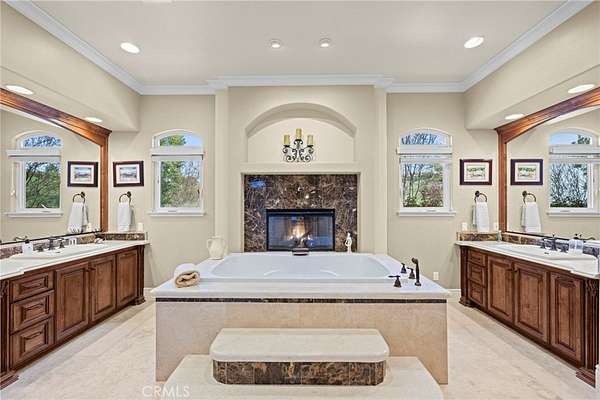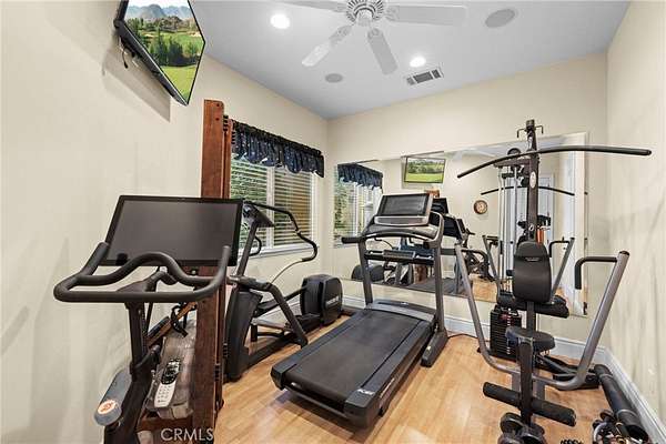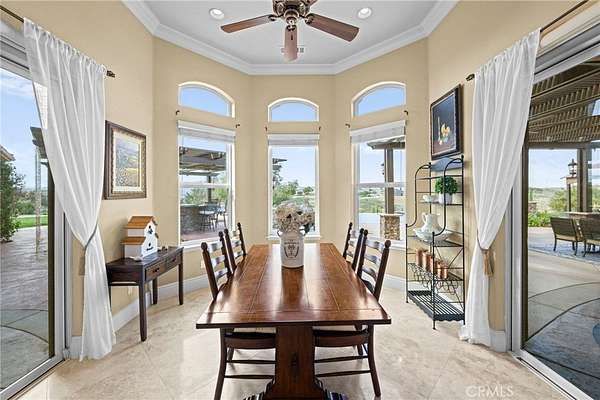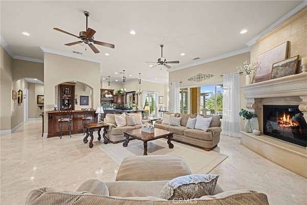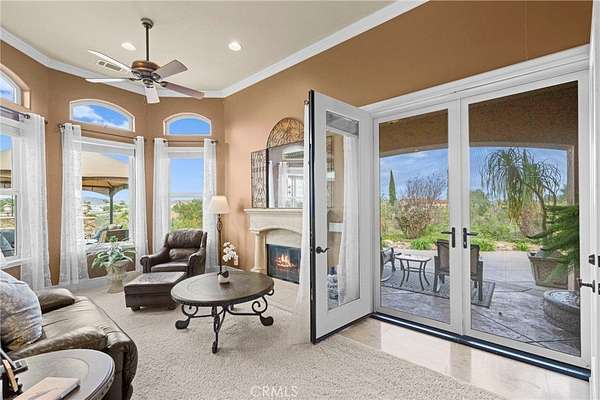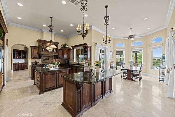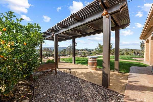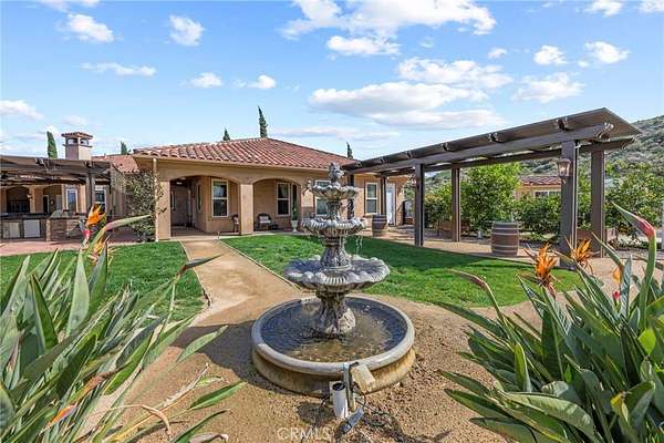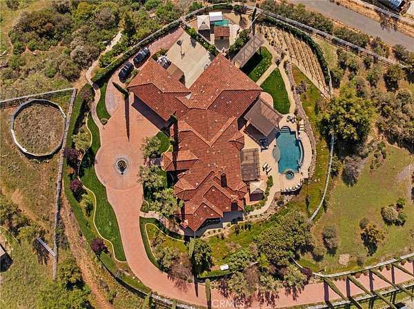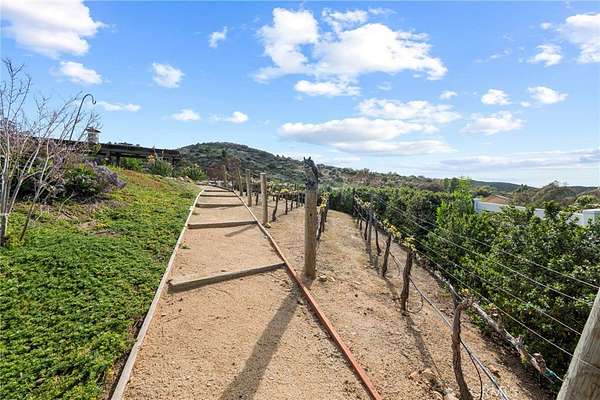 Set on 5.65 acres of rolling hills in the serene community of La Cresta, 21051 Via Sevilla is a luxurious 5,152-square-foot single-story estate that perfectly blends elegance, privacy, and the beauty of Southern California's countryside. With five spacious bedrooms, five bathrooms, an office, a game room, a library and an exercise room, this home was thoughtfully designed with every space in mind. Inside, the home impresses with its coffered lighting & natural flow. The gourmet kitchen is equipped with top-of-the-line appliances, ample storage in the oversized walk-in pantry, and a large center island, making it ideal for both everyday living & entertaining. The kitchen connects seamlessly to the generously sized living and dining areas, where large windows invite in natural light and showcase stunning views of the surrounding landscape. The wet bar includes a temperature-controlled wine room that holds up to 400 bottles of your favorite wine. Retreat to the luxurious primary suite, which features two fireplaces, a spa-like bathroom, and two spacious walk-in closets. Each additional bedroom offers en-suite bathrooms, walk-in closets, with thoughtful details throughout the home that reflect quality craftsmanship and design. Step outside to the resort-style pool, spa, and outdoor kitchen area that blends perfectly with the beautifully landscaped grounds and stunning views. The estate includes a charming boutique vineyard--a rare and delightful feature for wine enthusiasts or those who appreciate the art of winemaking. Water your grapes and fruit trees with the home's 100 GPM well. There's plenty of space and flat land to add equestrian facilities, a guest house, ample parking, or simply enjoy the open space and tranquility. La Cresta is known for its peaceful, upscale living, and this property embodies that lifestyle. With breathtaking sunsets, mountain views, and ample room to roam, this estate offers a unique opportunity to live in harmony with nature--without sacrificing comfort or sophistication.