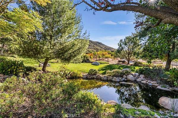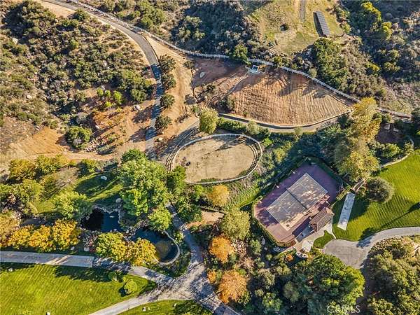 Set across an extraordinary 86 acres spanning five parcels you'll find the "one-of-a-kind" Golden Crest Ranch Estate and Golden Oaks Park, located in the prestigious La Cresta enclave with minimum 5-acre parcels. A rare combination of commanding scale, privacy, and breathtaking, unobstructed panoramic views that are truly unmatched. At the heart of the property lies Golden Oaks Park, a private recreational sanctuary among lush landscape, ancient oaks and mature trees, featuring a tennis court w/pavilion, outdoor fireplace, shuffleboard, horse shoe pit, 3-hole par-three golf circuit, cowboy fireside camp, round pen, citrus grove, and scenic overlook woven together by meandering paths that pass by a flowing stream, pond and waterfall with seating areas for peaceful reflection. The gated estate is positioned on a 21 acre knoll with sweeping vistas across rolling hills, cool breezes and open sky, consisting of 8550 square feet with 7 beds/9 baths including a separate 3 bed/1 bath guest house of 1950 sf. The main house was completely renovated in 2022 with no expense spared. Featuring a gourmet kitchen, office, gym, home theater, wine storage and a series of elegant living spaces enhanced by 5 fireplaces, soaring beam ceilings, and walls of glass opening through bi-fold doors to bring the landscape indoors. The grounds are a private resort with infinity pool, spa, putting green, outdoor kitchen, covered pavilion with heaters, outdoor fireplace lounge, estimated 2500 sf of expansive decks and covered terraces for grand-scale entertaining. The estate unfolds into a vast canvas with extraordinary potential for equestrian trails, vineyards, orchards, additional residences, supported by an existing barn with infrastructure to accommodate up to 10 horses. Locals tell stories this property was once home to a vibrant gold mine during California's early mining era. While the original mine was never formally documented and is believed to have been abandoned long ago, the legend persists-- the pool service still reportedly discovers flecks of gold in the pool's filtration system. The property is further enhanced by a large owned solar field, dual water sources (city and well), offering long-term self-sufficiency and cost savings. Featuring a 6 car over-sized garage. With the exceptional infrastructure, this is not simply a home, but a once-in-a-generation family compound offering scale, views, privacy, lifestyle, and future memories without compromise. See MLS OC26015017