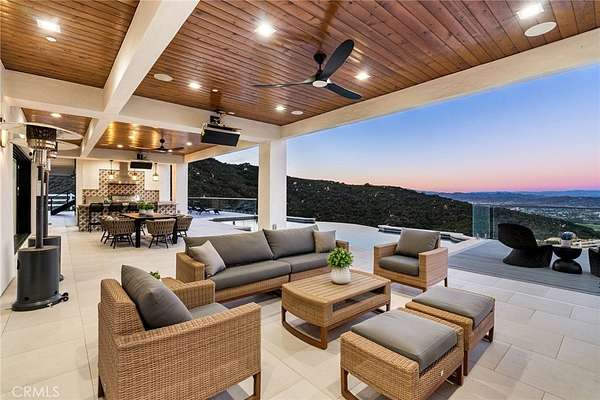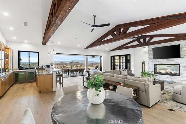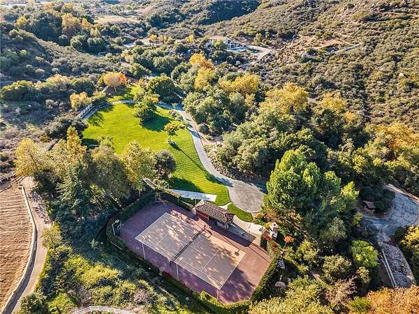 Set across an extraordinary 21 acres, you'll find the "one-of-a-kind" Golden Crest Ranch Estate and Golden Oaks Park, located in the prestigious La Cresta enclave with minimum 5-acre parcels. A rare combination of commanding scale, privacy, and breathtaking, unobstructed panoramic views that are truly unmatched. At the heart of the property lies Golden Oaks Park, a private recreational sanctuary among lush landscape, ancient oaks and mature trees, featuring a tennis court w/pavilion, outdoor fireplace, shuffleboard, horse shoe pit, 3-hole par-three golf circuit, cowboy fireside camp, round pen, citrus grove, and scenic overlook woven together by meandering paths that pass by a flowing stream, pond and waterfall with seating areas for peaceful reflection. The gated estate is positioned on a knoll with sweeping vistas across rolling hills, cool breezes and open sky, consisting of 8550 square feet with 7 beds/9 baths including a separate 3 bed/1 bath guest house of 1950 sf. The main house was completely renovated in 2022 with no expense spared. Featuring a Great Room, gourmet kitchen, office, gym, home theater, wine storage and a series of elegant living spaces enhanced by 5 fireplaces, soaring beam ceilings, and walls of glass opening through bi-fold doors to bring the landscape indoors. The grounds are a private resort with infinity pool, spa, putting green, outdoor kitchen, covered pavilion with heaters, outdoor fireplace lounge, and more than 2500 sf of expansive decks and covered terraces for grand-scale entertaining. The estate unfolds into a vast canvas with extraordinary potential for equestrian trails, vineyards, orchards, supported by an existing barn with infrastructure to accommodate up to 10 horses. Adding to the mystique, locals tell stories this property was once home to a vibrant gold mine during California's early mining era. While the original mine was never formally documented and is believed to have been abandoned long ago, the legend persists-- the pool service still reportedly discovers flecks of gold in the pool's filtration system. The property is further enhanced by a large owned solar field, dual water sources (city and well), offering long-term self-sufficiency and cost savings. Featuring a 6 car over-sized garage. With the exceptional infrastructure, this is not simply a home, but a once-in-a-generation family compound offering scale, views, privacy, lifestyle, and future memories without compromise. Add'l adjacent land available.