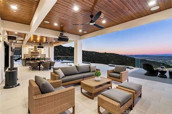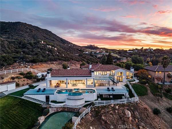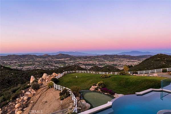 Set across an extraordinary 21 acres, you’ll find the “one-of-a-kind” Golden Crest Ranch Estate and Golden Oaks Park, located in the prestigious La Cresta enclave with minimum 5-acre parcels. A rare combination of commanding scale, privacy, and breathtaking, unobstructed panoramic views that are truly unmatched. At the heart of the property lies Golden Oaks Park, a private recreational sanctuary among lush landscape, ancient oaks and mature trees, featuring a tennis court w/pavilion, outdoor fireplace, shuffleboard, horse shoe pit, 3-hole par-three golf circuit, cowboy fireside camp, round pen, citrus grove, and scenic overlook woven together by meandering paths that pass by a flowing stream, pond and waterfall with seating areas for peaceful reflection. The gated estate is positioned on a knoll with sweeping vistas across rolling hills, cool breezes and open sky, consisting of 8550 square feet with 7 beds/9 baths including a separate 3 bed/1 bath guest house of 1950 sf. The main house was completely renovated in 2022 with no expense spared. Featuring a Great Room, gourmet kitchen, office, gym, home theater, wine storage and a series of elegant living spaces enhanced by 5 fireplaces, soaring beam ceilings, and walls of glass opening through bi-fold doors to bring the landscape indoors. The grounds are a private resort with infinity pool, spa, putting green, outdoor kitchen, covered pavilion with heaters, outdoor fireplace lounge, and more than 2500 sf of expansive decks and covered terraces for grand-scale entertaining. The estate unfolds into a vast canvas with extraordinary potential for equestrian trails, vineyards, orchards, supported by an existing barn with infrastructure to accommodate up to 10 horses. Adding to the mystique, locals tell stories this property was once home to a vibrant gold mine during California’s early mining era. While the original mine was never formally documented and is believed to have been abandoned long ago, the legend persists— the pool service still reportedly discovers flecks of gold in the pool’s filtration system. The property is further enhanced by a large owned solar field, dual water sources (city and well), offering long-term self-sufficiency and cost savings. Featuring a 6 car over-sized garage. With the exceptional infrastructure, this is not simply a home, but a once-in-a-generation family compound offering scale, views, privacy, lifestyle, and future memories without compromise. Add'l adjacent land available.