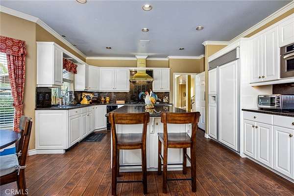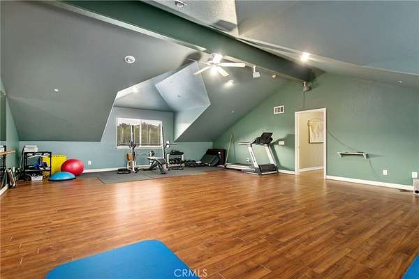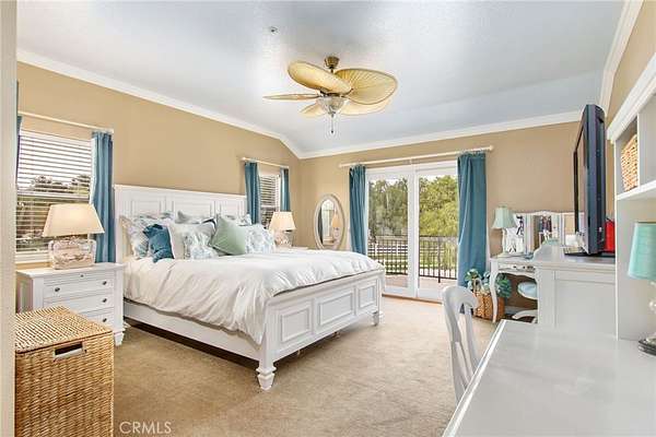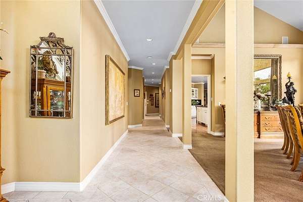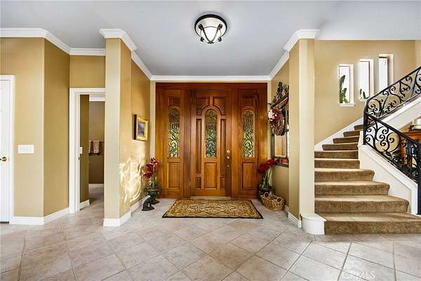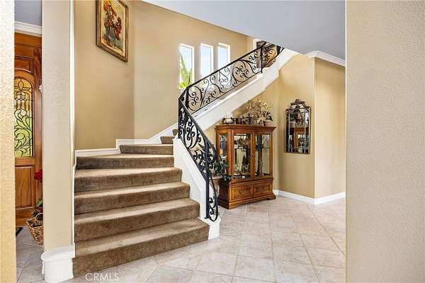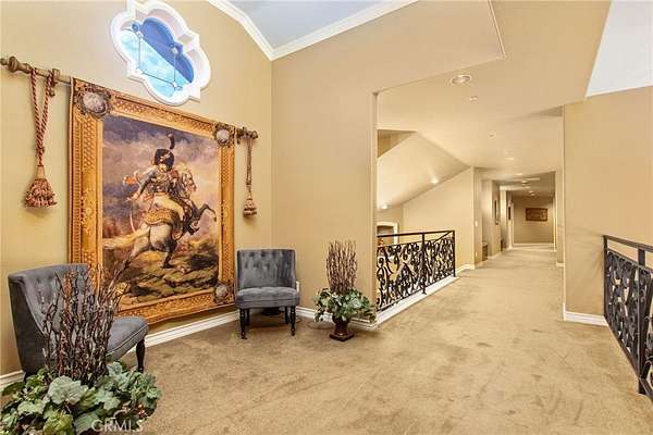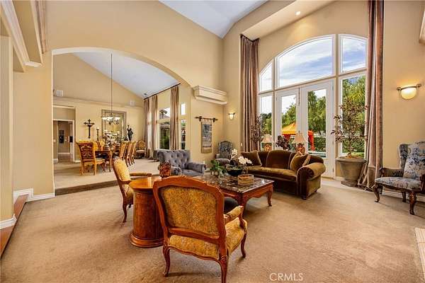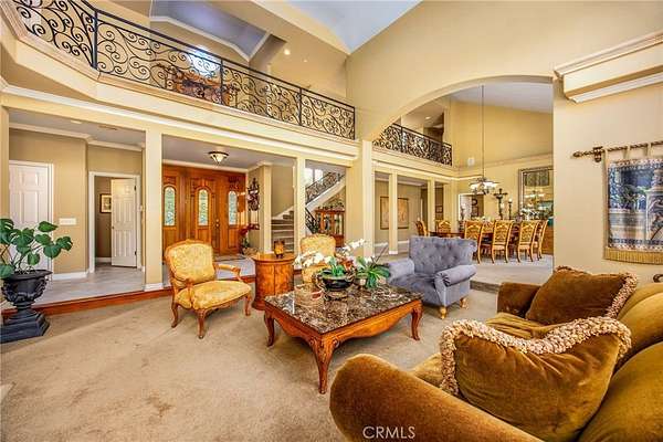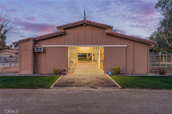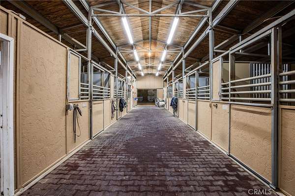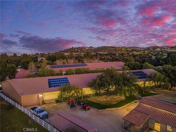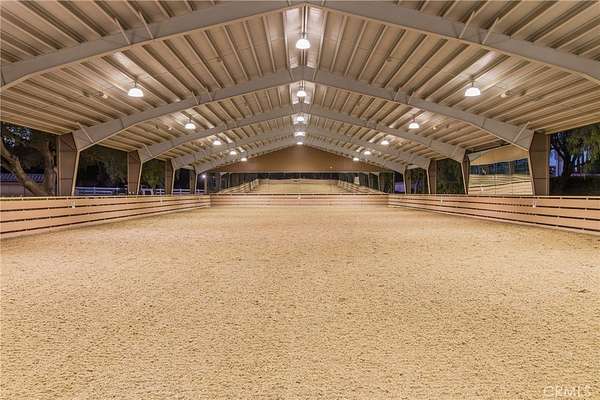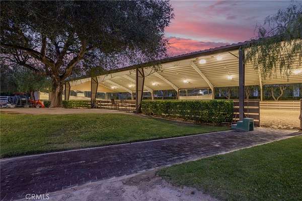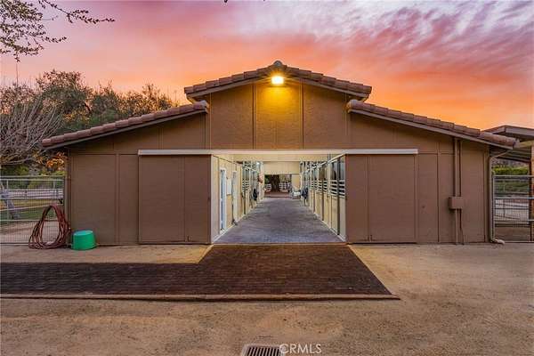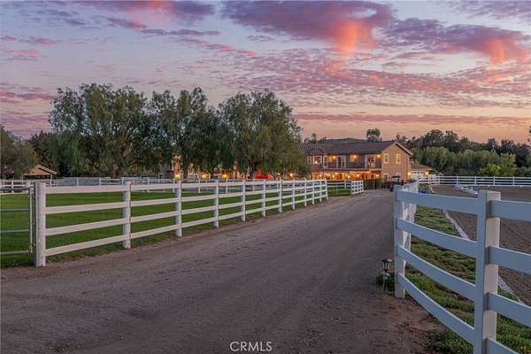 Welcome to one of La Cresta's premier gated equestrian estates, offering over 5 acres of fully developed horse facilities paired with more than 8,500 square feet of luxury living. Designed for the serious equestrian, this exceptional property delivers a true training-level setup rarely found in Southern California. The professional-grade equestrian complex features both a covered arena and Olympic-size outdoor arena with premium footing and mirrors. The facility includes an 8-stall breezeway barn with indoor/outdoor box stalls, a 4-stall Mare Motel, tack room, wash rack, feed room, barn restroom, and dedicated laundry area. A separate covered hay barn and 70-foot roll-up garage provide ideal storage for horse trailers, RVs, or equipment. Three grass pastures and two dirt turnouts offer ample space for turnout and conditioning. Beyond the equestrian facilities, the estate offers a grand motor court and covered loggia leading into an elegant residence with soaring ceilings, a formal living room with fireplace, and French doors opening to the outdoor entertaining areas. The gourmet kitchen features dual Cove dishwashers, a large walk-in pantry, additional refrigeration, and a wine cabinet, flowing into the formal dining space. The main level includes a private living suite, two offices, and a spacious bonus room with full bar and cinematic entertainment setup. Upstairs, a mirrored gym with ballet barre and a luxurious primary suite with wet bar, fireplace, dual balconies, heated stone floors, steam shower, soaking tub, dual vanities, and two walk-in closets. The outdoor living area features a paver-stone driveway, solar-heated pool and spa, expansive patios, plus a garden and orchard with more than fifteen mature fruit trees. Additional highlights include a 4-car garage with EV charging, full-house gas generator, and private water well systems. All set in prestigious La Cresta, just minutes from top-rated schools, shopping, and Temecula Wine Country.