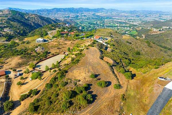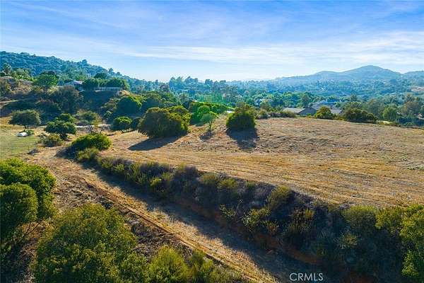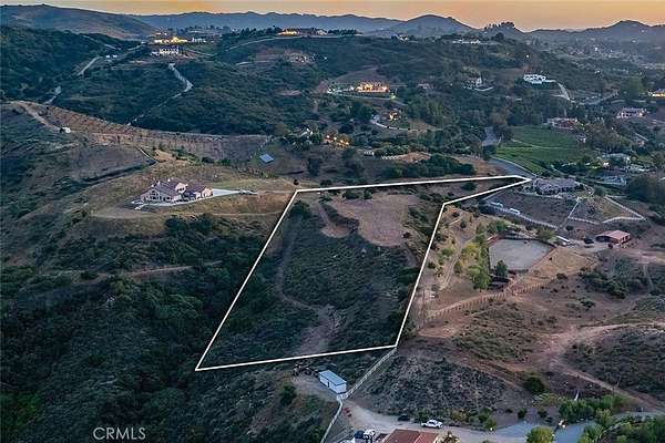 MASSIVE CITY LIGHTS AND MOUNTAIN VIEWS FROM THIS LA CRESTA 5-ACRE PARCEL! Perfect cul-de-sac site, centrally located on the Santa Rosa Plateau with rough-graded access road and enormous pad, upon which you can build your DREAM ESTATE within one of Southern California’s most prestigious communities. This parcel is unique, offering a huge building pad and unobstructed panoramic views of the entire Temecula Valley and mountains beyond, including Big Bear & San Jacinto Mountains. View parcels with usable land are RARE these days, so don’t miss this one!. Not only does this property provide stunning views and usable space, but it has a lovely approach off the oak-studded Avenida de Arboles and is conveniently located in the heart of La Cresta. Assisting with affordable construction, in addition to the existing pad and driveway, are public water and power very nearby. You may also install your own private water well with fantastic and abundant water on the Plateau! Start dreaming…and manifest your forever home in the heart of La Cresta! *LA CRESTA & THE SANTA ROSA PLATEAU: 5-ac minimum parcels, minutes to schools, restaurants, hospitals, shopping, 15 Fwy & Temecula Wine Country. Enjoy this peaceful ranch community w/no commercial businesses, robust social activities, miles of private community trails & 1000s of acres of Ecological Reserve…All less than 1.5 hours from LA, SD, OC, Palm Springs & Big Bear. Discover the country, yet convenient, lifestyle of La Cresta, Tenaja & the Communities of the Santa Rosa Plateau!
