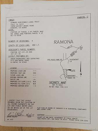 Est $1,476/moGreat opportunity to build your dream home on 10+ acres. Great area of West Ramona off of Mussey Grade Road. Cross street is Mahogany Ranch Road. Parcel is accessed by a private road. Spectacular views. Water/electric nearby. Possible ability to connect to Romana water district. Neighbors had success in finding water in drilling a well also. There is also a second 10+ acre parcel adjacent to this parcel (MLS# 220023313) for sale by the same seller. Buy one or both.
