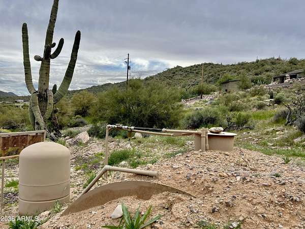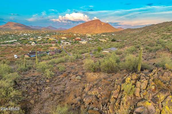Great opportunity to own a sloping lot with 360 degree views from the top, including views looking west to the sunset from the peak. Or build lower on the lot and have 180 degree views to the East. Shared well is on the NE corner close to 10th St. With some minor excavation there are a couple semi level sites that would be nice for building. Or live like a King or Queen and build on the very top! This lot continues OVER the ridge to the west, and up to the landscaped portion of the home to the south. There is a vacant lot to the north before you see the nice home that's already built there. New River is a sleepy suburb of Scottsdale and Phoenix sitting over 1000 feet above downtown Phx. The well is in with electric and supplying the house to the south already!