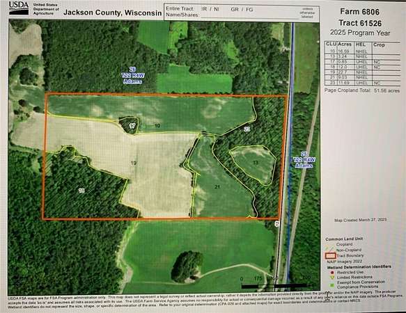 If this land could speak, it would have tales to tell! The acreage has not been offered to the public in approximately 80 years! Now's your chance to own 80+/- acres located minutes north of Black River Falls, WI. The acreage boasts a great mix of tillable and wooded ground. One finds approximately 51 acres of tillable land and 24 acres of wooded property (per Farm Service Map). A local farmer is currently stewarding the property. The deer and elk sign is incredible. The local elk herd frequents this area! One will experience spectacular views from several locations on the property. The seller has installed a Wisconsin DOT-approved driveway access from Hwy 12/27. The potential here is amazing!