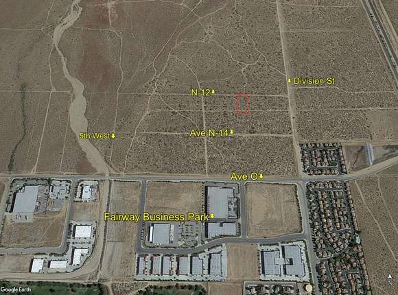 Investor 1.25 acres, zoned M-4 Planned Industrial . owner will carry, in the west Palmdale area. Less then 1/2 mile away: Plant 42 to the east, Fairway Business Park to south, AV Freeway 14 to west, AV Mall to SW, and the O-8 commercial center also to the south. Big names anchor this area, Boeing, Wal Mart, Sam's Club, Macy's and others. Zoning is similar to light industrial business park use. Sewer & nat gas on Division St. Near parcel, Division St and N-12 are dirt roads. All cash. Buyer and buyer's agent to verify all information provided herein by listing broker.Buyers are advised to verify all aspects of said land including current and future zone, size, dimensions, topography, easements, access, net size, use, zoning, utilities availability, to their satisfaction. Buyers are advised to go to all the appropriate county agencies including PALMDALE Planning department and Building and Safety to ascertain information pertaining to the subject property.