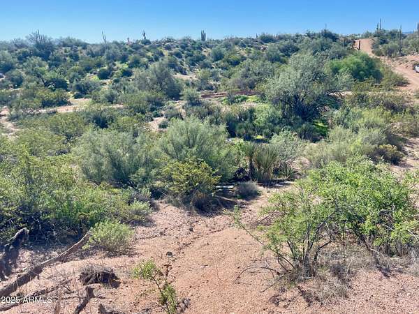 7.67 AC equestrian dream: hilltop homesite + wide, usable lower bench ideal for arena/barn/turnouts. Large-acreage, million-dollar neighbors; private roads kept smooth--easy trailering. A few hundred feet to Tonto National Forest & Granite Mountain preserve trails--ride for miles. 360? mountain views, lush Sonoran desert with saguaros, multiple build sites. Unincorporated Maricopa County near 142nd Pl & Leisure Ln. SRP power nearby; well & septic needed. Possible split--buyer to verify. Motivated seller--aggressively priced to sell!