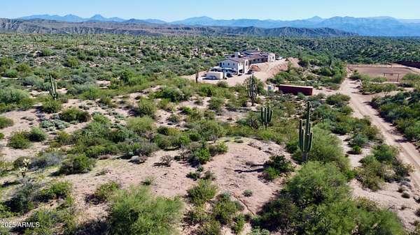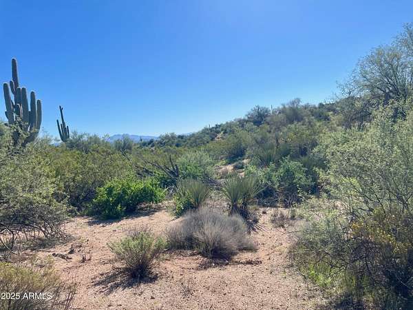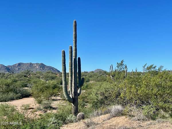 7.67 AC equestrian dream: hilltop homesite + wide, usable lower bench ideal for arena/barn/turnouts. Large-acreage, million-dollar neighbors; private roads kept smooth-easy trailering. A few hundred feet to Tonto National Forest & Granite Mountain preserve trails-ride for miles. 360 degrees mountain views, lush Sonoran desert with saguaros, multiple build sites. Unincorporated Maricopa County near 142nd Pl & Leisure Ln. SRP power nearby; well & septic needed. Possible split-buyer to verify. Motivated seller-aggressively priced to sell!