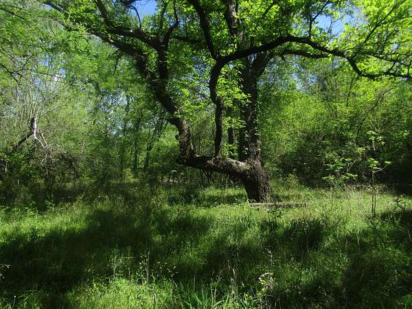 The land showcases rolling terrain with a diverse mix of mature timber, including Red Oak, Pin Oak, Post Oak, Elm, Hickory, and other native species, creating an ideal habitat for wildlife. A small creek runs through the property, enhancing both the natural beauty and water resources.