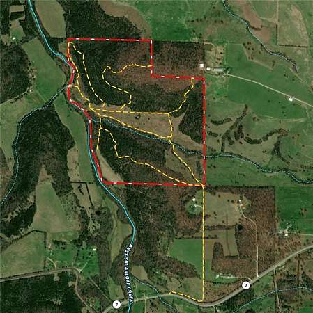 Don't miss this exceptional 120+- acre hunting and recreational property located between Bergman and Lead Hill, Arkansas, just off Hwy 7 North. This diverse tract features over 2,000 feet of year-round Sugar Loaf Creek frontage, along with a seasonal creek that enhances the property's natural appeal and draws abundant wildlife. What truly sets this property apart is the extensive trail system--miles of established trails weave throughout, offering easy access by foot, ATV, or UTV. The landscape includes cedar groves for cover, rolling terrain, and approximately 35 acres of open ground perfect for food plots or small pasture areas. Loaded with whitetail deer and turkey, partially fenced, and easily accessible, this land is a turnkey opportunity for hunters, outdoor enthusiasts, or those seeking a peaceful retreat. Plus, you're just a short drive to Bull Shoals Lake, combining the best of both woods and water in one prime North Arkansas location.