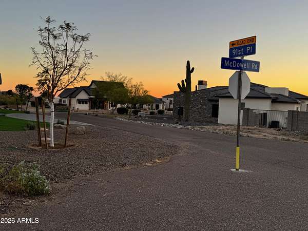 East side of the 202. Closest cross roads are McDowell and Ellsworth. East on McDowell, South on 91st Place. Vacant lot on West side of road. No address has bee assigned yet.