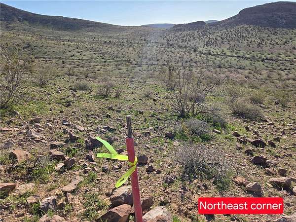From 93. Take Cottonwood East. approximately 1.9 miles. Turn Left on Amana and follow approximately 5 miles until it turns Right onto Jackrabbit or Fietz. Follow past Veteran's Village until you go up and over the steep grade. You should see the neighboring parcels marker on the right side of the road. Walk north to find The Southeast corner marker.
