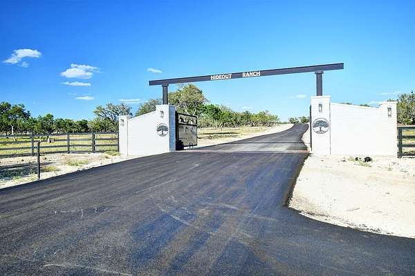 Est $2,286/moAwesome 7.5 +/- Acres, The Newest Gated Community "The HIDEOUT RANCH" Level, Great Views. Hardwood Trees. Test Water Well On site, 750' Trinity, Just needs a pump installed. Quotes & test data available from Well Company. Capable of producing 10 - 15 GPM easily. 1,600 SF min. build requirement. Guest house, additional garages, Barndominiums allowed. Personal livestock are permitted. Camping is permitted 7 days out of every 30 days with use of professional equipment. Short term rentals are allowed. No timeframe to build. Paved roads, underground utilities including fiber optic.