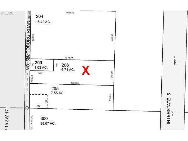 I-5 , Exit 209, West on Diamond Hill Road towards Halsey. South on North Coburg Road to property.