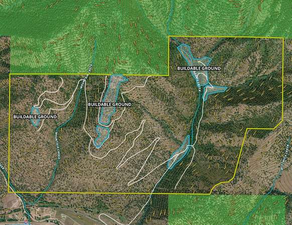 Locals recognize this historic timberland for its strong wildlife habitat, with elk, mule deer, black bear, mountain lions, and upland birds regularly moving through. Two year-round creeks-Adams Creek and a small section of West Mountain Creek-flow through portions of the ranch.