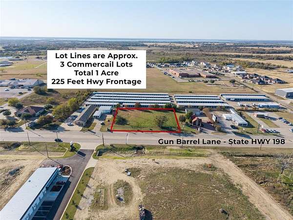 Prime commercial land for sale in Gun Barrel City, Texas. This one acre property includes three flat, build ready commercial lots with 225 feet of highway frontage on Gun Barrel Lane, a major state route that sees approximately 21,900 vehicles per day according to TxDOT. The high traffic count and strong visibility make this site ideal for commercial development, investment, or a new business location.