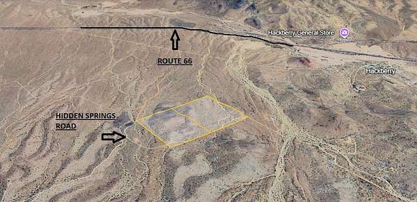from route 66 turn onto hackberry bypass and bare left. go 1 mile and make right onto north mine road. stay left at the fork in road. go 1 mile and make left onto hidden springs road, follow it around and property will be on the left.
