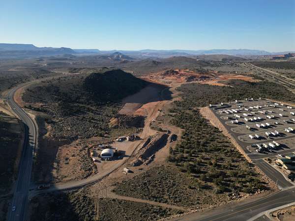 Est $207,774/moPrime +/-104-acre development site zoned Business & Manufacturing Park (BMP) just west of Exit 27 off I-15 in Toquerville. Excellent freeway access, strong visibility, and close to the new reservoir in a growing Southern Utah corridor. Zoning allows office, retail, hotels, gas stations, dining, coffee, storage, parking, small business, and light manufacturing-ideal for mixed-use or phased projects. Traffic, survey, archaeological, and geotech studies complete; grading permits in place. Utilities available; water lines installed. Horizontal improvements ~90% complete. Adjacent +/-28 acres also available. Listing information deemed reliable; buyer to verify. Please call for details.