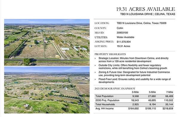Prime Development Opportunity Just North of Downtown Celina. Located just north of Downtown Celina, this property presents an exceptional opportunity for development in one of the fastest-growing areas in North Texas. Situated along North Louisiana Street, just north of the future O'Brien Parkway intersection, the site offers excellent access and high visibility--making it ideal for commercial, residential, or investment use.