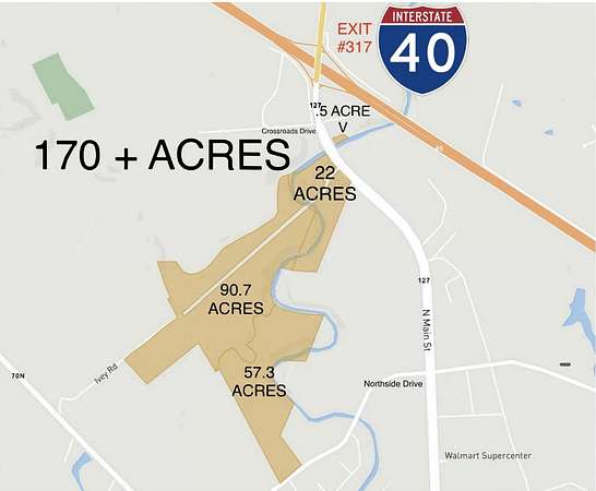 From I-40 take EXIT #317. Property located primarily on southwest corner of North Main Street and Crossroads Drive. Additional frontage and/or access from My Yamaha Drive, Northside Drive, and Ivey Road.