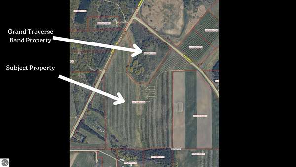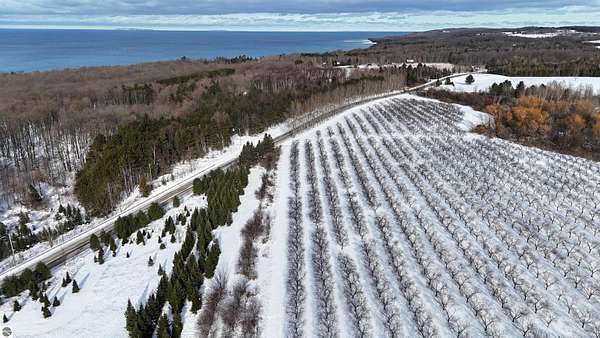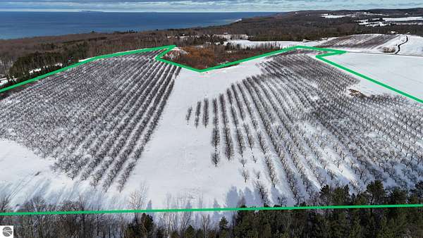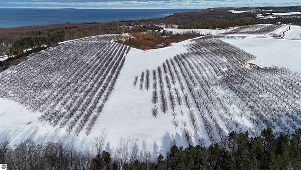 Over 40 Acres of Permanently Preserved Orchard Land with M-22 Frontage Offered is a rare opportunity to acquire over 40 acres of predominantly cherry orchard land in Leelanau Township, featuring gently rolling terrain and prominent frontage along both M-22 and Jelinek Road. This property is protected by a recorded Conservation Easement held by the Leelanau Conservancy, ensuring the land remains permanently preserved for agricultural use, open space, and scenic value. The easement prohibits subdivision and residential or commercial development, making this an exceptional offering for buyers seeking long-term land preservation, agricultural continuity, or estate-scale privacy without future development pressure. The landscape reflects generations of careful stewardship, with productive orchard acreage, natural contours, and visibility along one of Northern Michigan's most iconic scenic corridors. Ownership includes full private use consistent with the easement, including continued orchard operations and approved agricultural improvements. This property will most strongly appeal to a conservation-minded buyer, neighboring landowners, or a legacy purchaser seeking to protect and steward a meaningful tract of Leelanau County land for future generations. Sale subject to the recorded Conservation Easement. Full documentation available upon request.