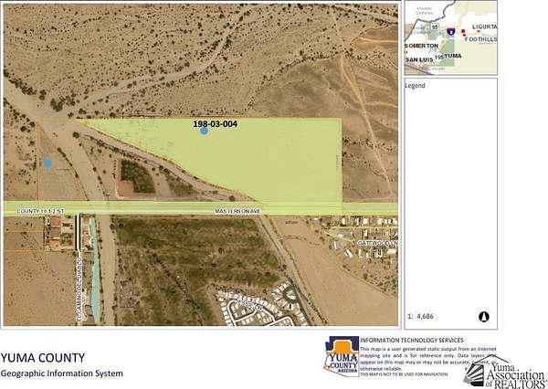 Est $27,519/moEndless Potential Awaits on 26.39 Acres in the North Foothills of Yuma. This expansive property offers a rare opportunity to build your vision in one of Yuma's most sought-after areas. Zoned R-1-8 the land is perfect for residential development, custom homes, or community development. With majestic desert and mountain views and easy access to amenities, the possibilities are as vast as the landscape itself. Whether you're dreaming of a new community or your own personal retreat, this prime land provides a blank canvas to bring your ideas to life. Additional parcel 18.74 acres on the south side of Matterson also available Zoned RVS. Contact listing agent for details.