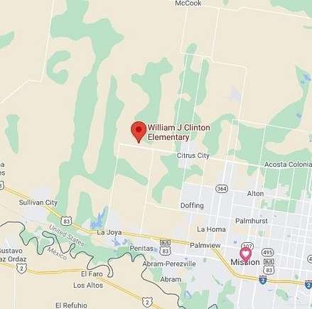 From Interstate 2, North on Tom Gil rd. West on State Highway 107 N at William J Clinton Elementary.