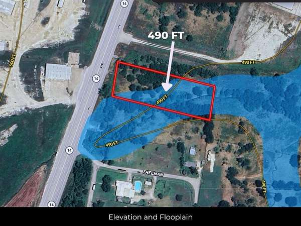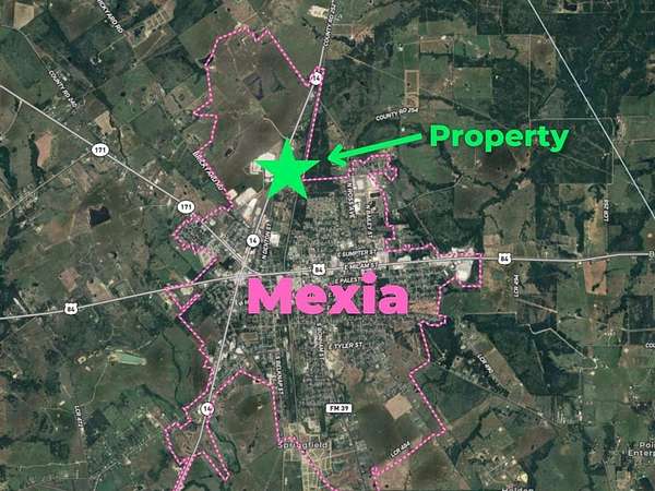 1.29 acres on N. Martin Luther King Jr. Hwy (State Hwy 14) in Mexia, Limestone County, TX. Rectangular lot: 402 ft deep x 140 ft of highway frontage. Flat terrain. Partial floodplain: approx. 0.5 acres outside floodplain; remainder in 500-year flood zone (lowest FEMA risk classification). Commercial use only. Located within Mexia Economic Development Zone. Directly across from Mexia Industrial Park (Carry-On Trailers, Kioti Tractor assembly). Power available (Oncor). City water and sewer available (City of Mexia). No HOA. No liens or back taxes. Annual taxes: $241.55. Warranted title. Survey available. Conveyed by warranty deed. 2 miles to Downtown Mexia; 45 min to Waco; 85 miles to Dallas. GPS: 31.6976, -96.4867. APN: R14865.