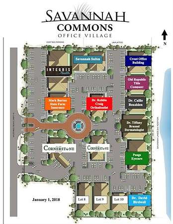From Mustang Rd and 59th St, go south on N Mustang Rd. Turn left at Savannah Commons office village sign. After entering take the first round about exit and continue straight to the property.