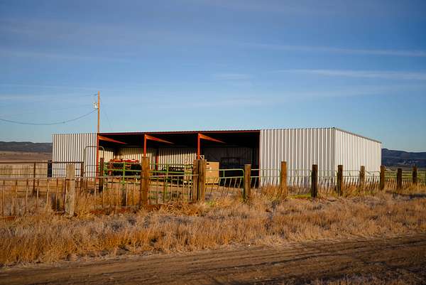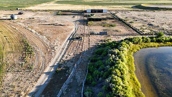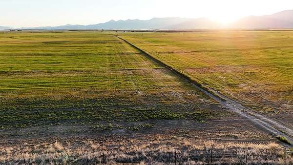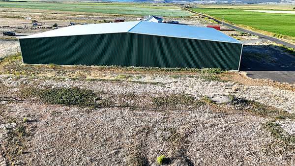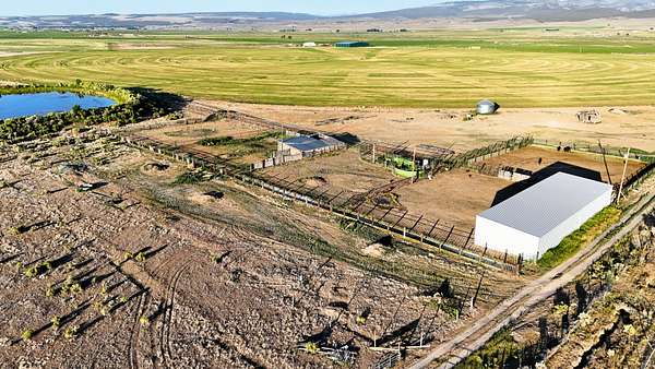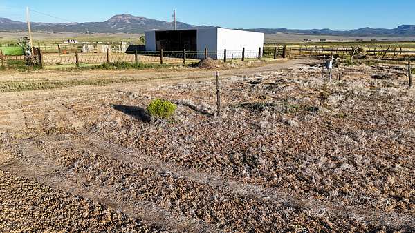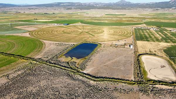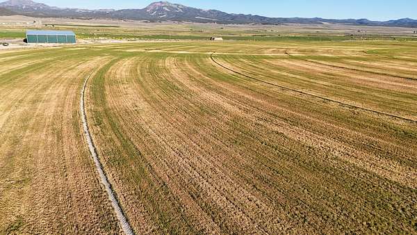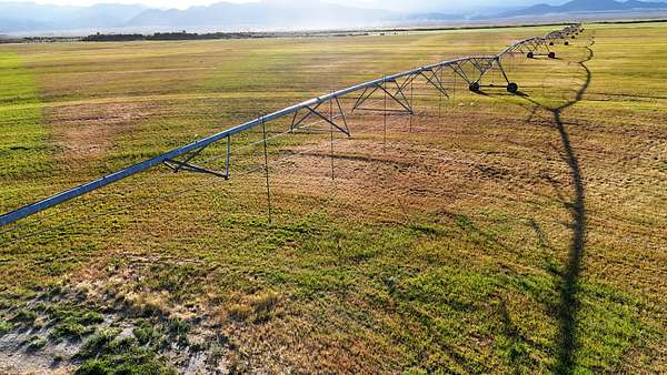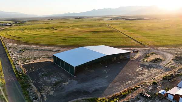 The property includes a 25,000 square-foot hay barn located at the southwest corner of the parcel, offering ample storage and easy access. Additionally, a 3,000 square-foot, three-sided shed provides additional storage space for equipment and supplies. There is also an animal drinker and over 150 Elus of water rights, held by Utah WR 61-224, ensuring that irrigation needs can be met year-round. The updated water delivery system includes holding ponds and a new custom pivot system that utilizes a Variable Frequency Drive (VFD) to manage water flow efficiently.