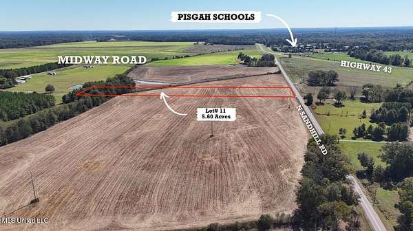Est $1,149/moGreat 5.60-Acre Homesite in SandHill Farms! Lot 11 Offers Plenty of Space for your Custom Home and Shop in The Newest Developments in Pisgah! Located in the Pisgah School District and Less Than One Mile from the School, You'll Enjoy Quiet Country Living with Quick Access to Highway 25, the Ross Barnett Reservoir, and Everything in Brandon and Flowood. Minimum 2,500 SQFT to Build. Barndominiums and Shops Allowed. No Mobile or Modular Homes. More Lots Available!